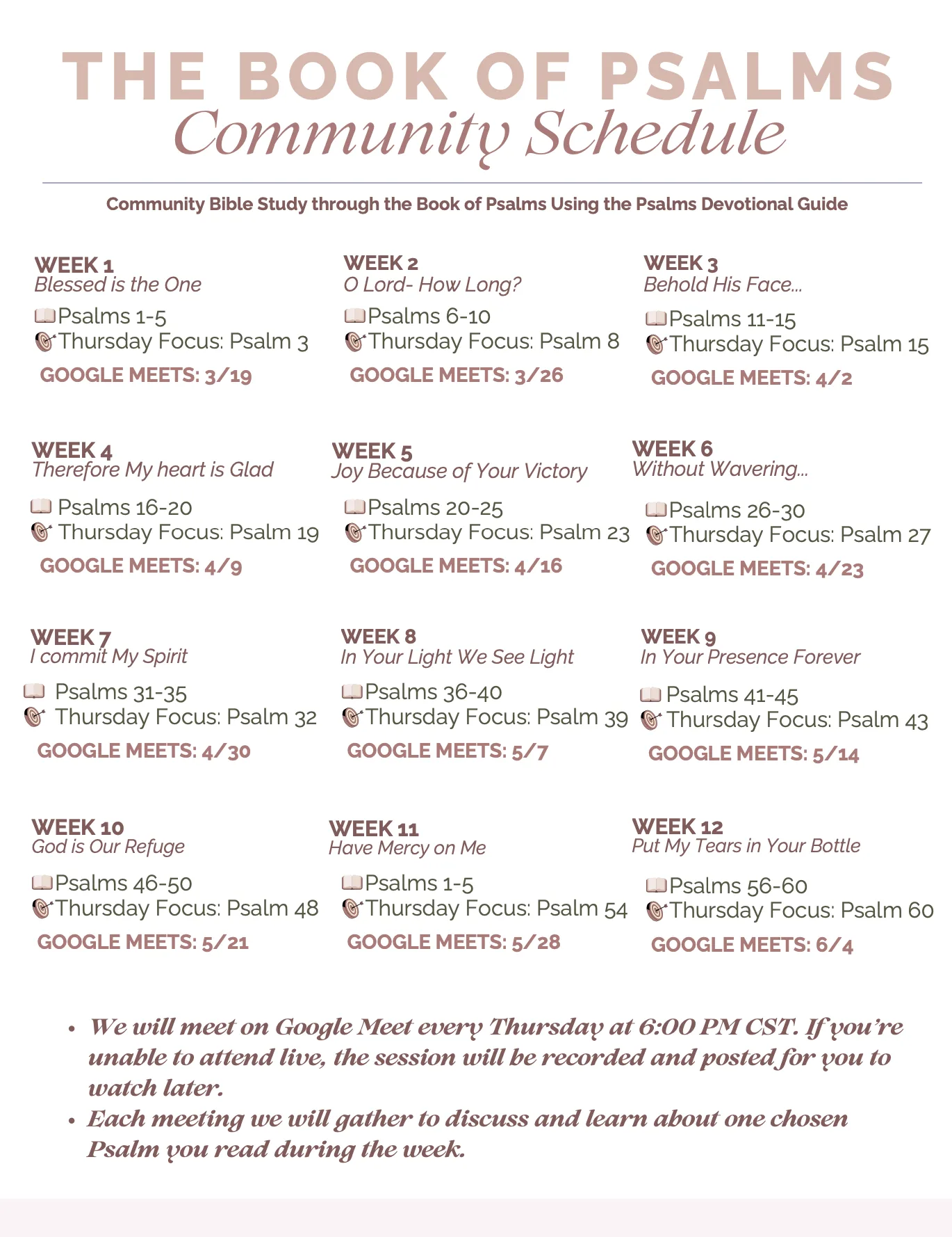 New! Come Study the Psalms With Us