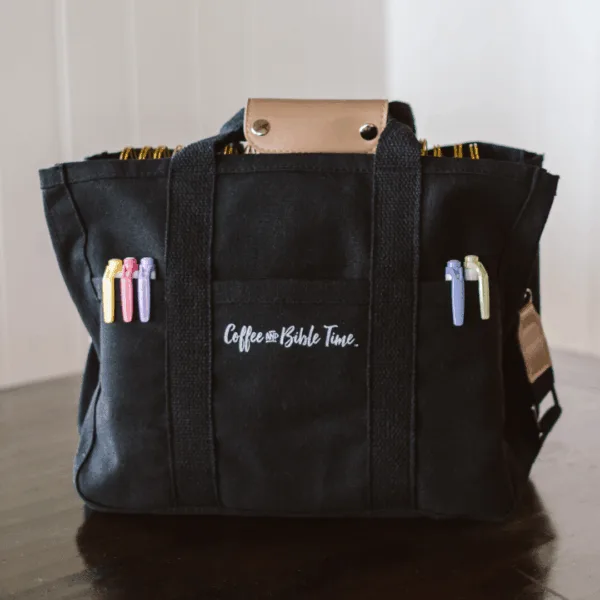 This durable canvas tote is designed to carry your Bible study essentials in style. With a spacious interior, multiple pockets, and the signature Coffee and Bible Time print, it’s the perfect companion for devotionals, journaling, and more.